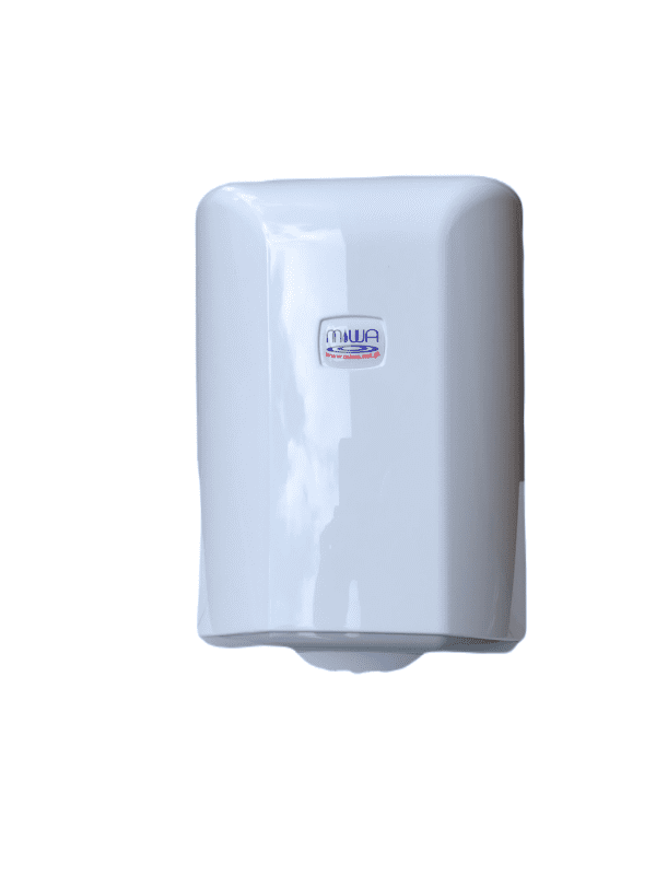 Wykonany z mocnego, białego plastiku ABS naścienny pojemnik.